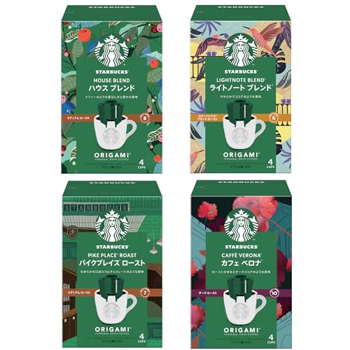 スターバックス オリガミ パーソナルドリップコーヒー 4種アソート(ハウス ブレンド/カフェ ベロナ/ライトノート ブレンド/パイクプレイスロースト),16杯分