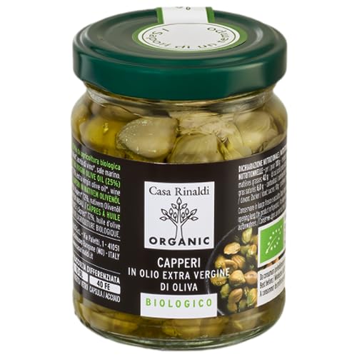 [Casa Rinaldi・カーサリナルディ] 有機ケーパー 120g(イタリア産、有機JAS認証、有機オリーブオイルに漬け、大きい実、ジューシーな食感、魚料理・ピザ・パスタに最適)
