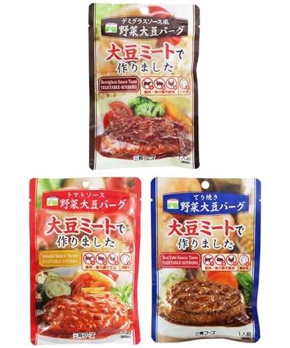 三育フーズ 大豆ミートで作った 野菜大豆ハンバーグ 3種3袋セット ( デミグラスソース・トマトソース・てり焼き) レトルト 大豆バーグ