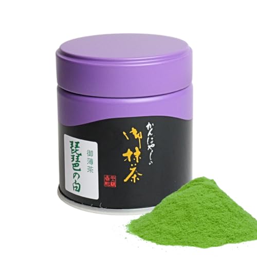 上林春松本店 抹茶 琵琶の白 40g 缶 お点前用 無添加 450年老舗 (Biwanoshiro/Ceremonial Grade) KYOTO UJI Powder Green Tea 【丸竹夷 公式ステッカー/点て方ガイド付】