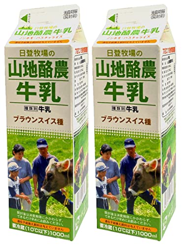 無添加放牧牛乳 山地酪農牛乳1000ml×2パック★クール便★無農薬有機飼料で飼育した、山地放牧牛の無調整ミルクです。低温殺菌(72℃で15秒)脂肪分無調整のノンホモです。クセが無くさっぱりした飲み口。