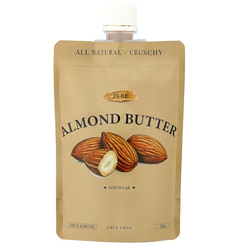 【Pure Almond Butter】アーモンドバター無糖(100%アーモンド) 180g 完全無添加 無塩 砂糖不使用 国内製造 超粗挽き ザクザク食感 焙煎ブレンド エコパウチ入り ヴィーガン対応