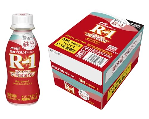 【Amazon.co.jp限定】明治プロビオヨーグルトR-1 ドリンクタイプ 満たすカラダ鉄分 112g×12本 強さひきだす乳酸菌【クール便】